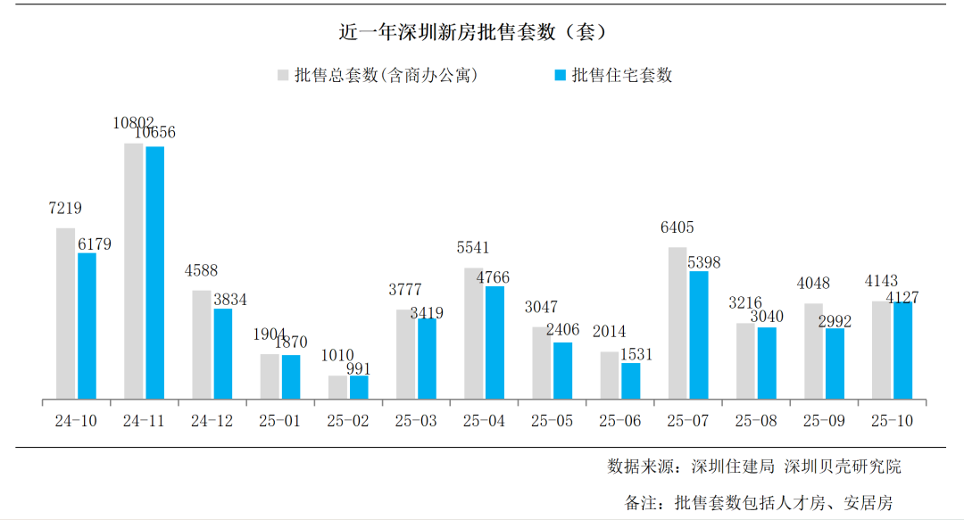 在新房市场方面,置业者入市意愿减弱导致成交放缓。据深圳贝壳研究院统计,10月深圳新房成交3352套,环比下降29%;其中住宅成交2651套,环比下降14.1%,市场整体呈现降温迹象。值得关注的是,尽管成交下滑,但新房供应端表现活跃。